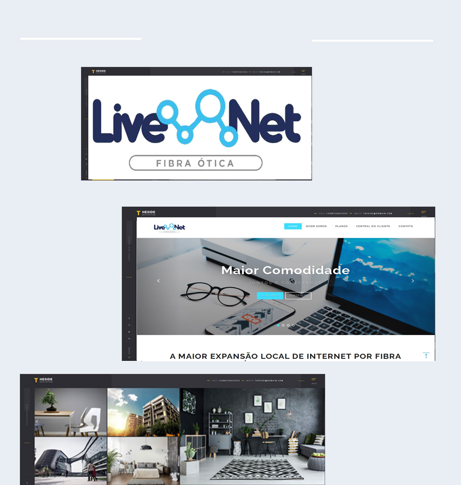 Criação de sites para as mais diversas marcas, layout estilizado para tornar a navegação mais agradável e impactante.